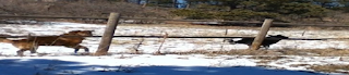 Just like Bear, Mocha lived a long time, supporting the theory that only the good die young. I believe she was 15 years old when she traveled over the rainbow bridge. The black dog in the pictures was one of her many understudies. I’m not sure why different dogs came and went at this residence, but Mocha was a constant. Mocha wasn’t always available to run down her driveway to lunge at the fence. That is because her owners had another fenced area and sometimes kept Mocha in the second area where there wasn’t any road access. I mostly saw Mocha at her gate since her property didn’t follow as much of my path to the hiking trails. I did encounter her more often in the winter when snow kept me off of the hiking trails. During the winter, I’d have to walk on the dirt roads of the subdivision.