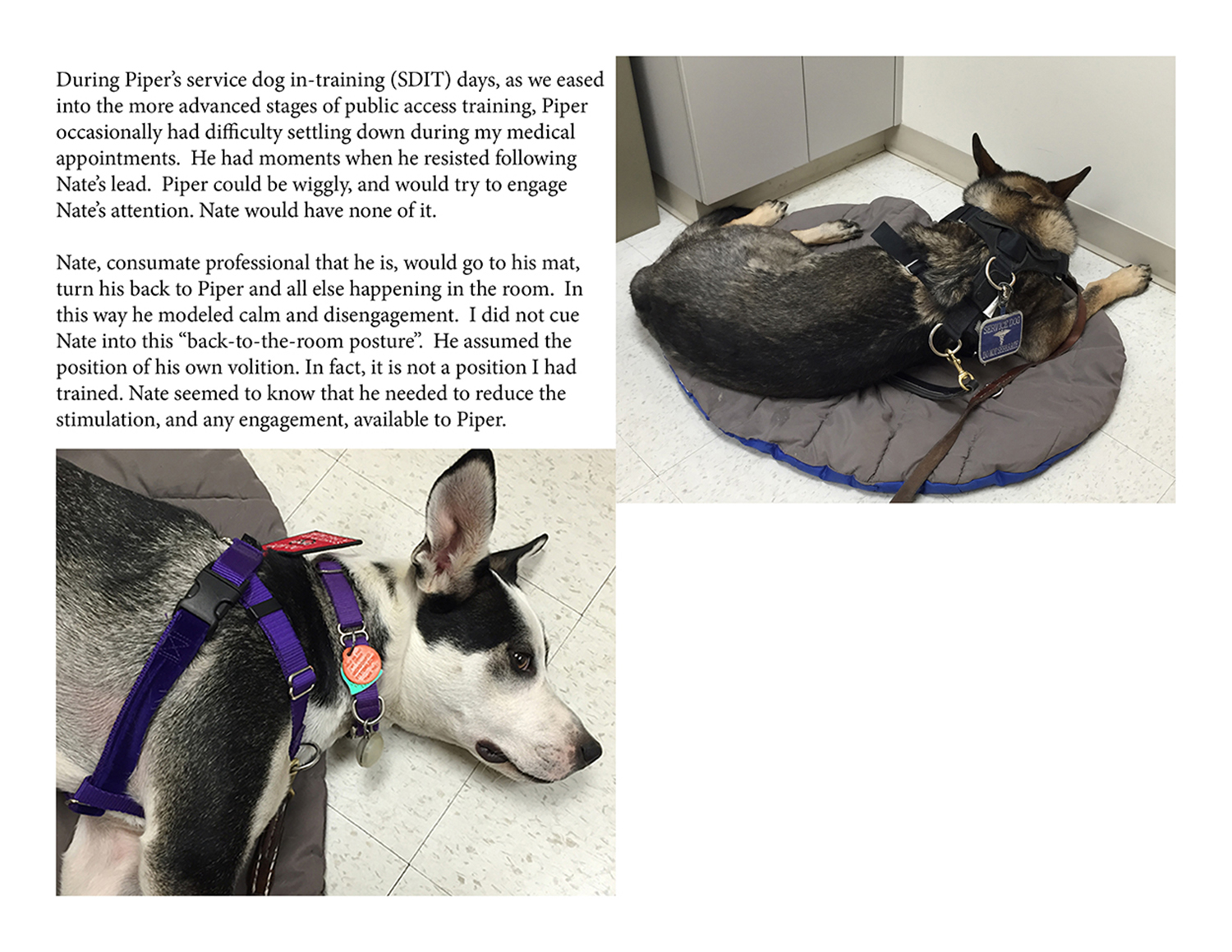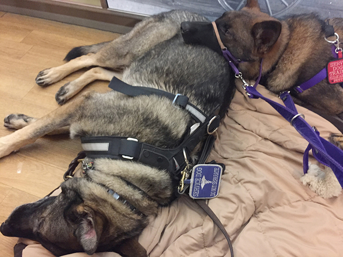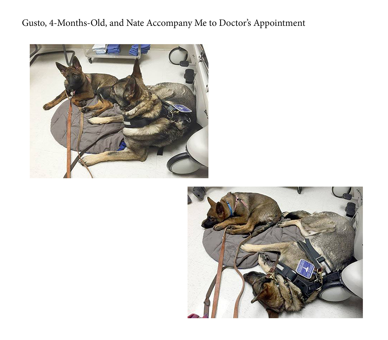 Taking such young puppies out into the community requires extra vigilance on the part of the handler. When he was only 12-weeks old, I took Gusto to a familiar local restaurant, long accustomed to welcoming the presence of my older working dogs. During these outings, I always parked near an entrance, and sat at a table near the same door, so that if Gusto was restless or otherwise required a hasty, unobtrusive, retreat it was easy to accomplish.